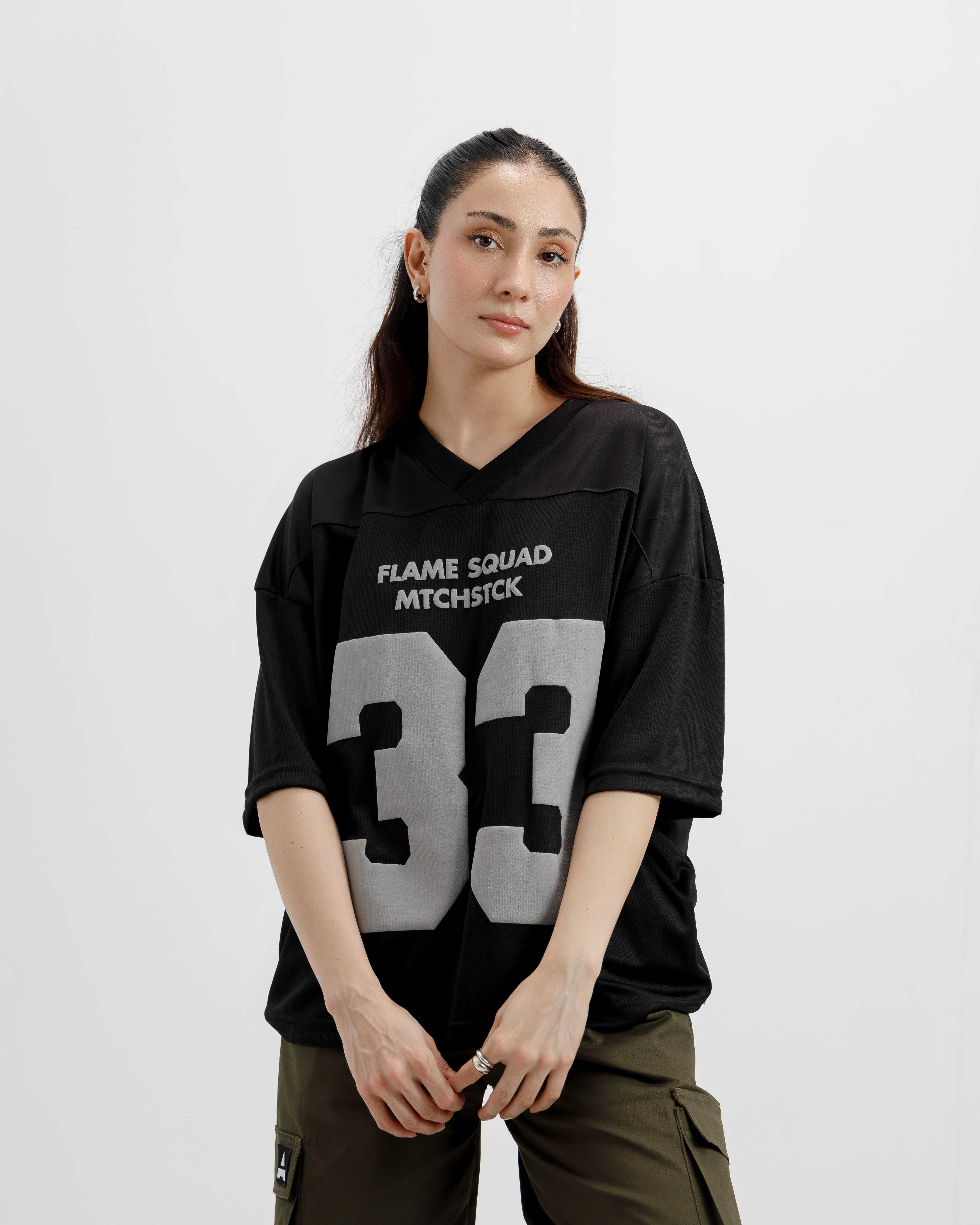 Breathable, lightweight, and built for movement. Our mesh jersey features drop shoulders, a ribbed neckline, and bold screen-printed graphics—designed for statement comfort in the heat.